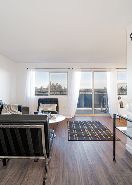Designer layouts with private balconies and natural light. Mid-century architecture provides charm and privacy. Upgraded kitchens with quartz countertops make daily life effortless.